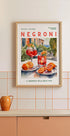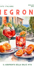 Ein farbenfrohes Aquarellplakat, das den legendären Negroni-Cocktail feiert, vor einer verträumten italienischen Sommerkulisse. Mit sonnigen Orangen, erfrischenden Getränken und einem Hauch mediterranem Charme fängt das Kunstwerk die Essenz ein La Dolce Vita– perfekt für Küchenwände, Bars oder jeden Liebhaber des zeitlosen italienischen Stils.