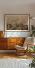 „Evening City“ von Christina Sillen fängt das ruhige Abendrot der Stadt ein: eine eindrucksvolle Skyline in Gold- und Grautönen, deren Texturschichten an abgenutzte Fassaden und moderne Wolkenkratzer erinnern. Das gedämpfte, erdige Farbspektrum in Ocker, Beige und Sepia erzeugt Ruhe, Tiefe und eine poetische, urbane Melancholie. Ein ruhiger Blick auf die Seele der Großstadt.