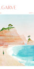 Ein helles und inspirierendes Poster der Algarve, Portugal, das goldene Klippen, türkisfarbenes Meer und einen friedlichen Strandspaziergang zeigt. Mit sanften Pastellfarben und Küstencharme fängt dieses Kunstwerk die Essenz von Sommerferien, europäischer Schönheit und ruhigen Küstenlandschaften ein.