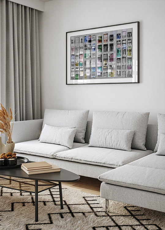 Amsterdam 36 von Igor Shrayer verwandelt die Kanäle und Fassaden der Stadt in eine grafische, geometrische Komposition. Spiegelungen im Wasser erzeugen rhythmische Muster aus Fenstern und Linien, die Ordnung und Bewegung in Einklang bringen. Eine moderne, abstrakte Hommage an Amsterdam, die dem Raum Ruhe und Energie verleiht. Perfekt für moderne Innenräume.