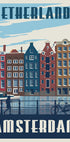 Fangen Sie die Atmosphäre von Amsterdam mit einem stilvollen Reiseposter ein: Bunte Grachtenhäuser mit klassischen Giebeln spiegeln sich im Wasser, ein Fahrrad ruht auf dem Geländer der Brücke und kleine Boote gleiten unter einem sanften Abendhimmel vorbei. Grafisch, minimalistisch und ikonisch – ein Hingucker, der den Charme der Großstadt nach Hause holt. Der Titel AMSTERDAM ist als grafischer Text deutlich sichtbar.