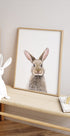Ein wunderschönes Porträt eines Kaninchenbabys, aufgenommen vor einem reinweißen Hintergrund. Das weiche Fell, die aufgestellten Ohren und der unschuldige Look machen dieses Stück perfekt für Kinderzimmer, Kindergärten oder für alle, die niedliche Tierporträts lieben.