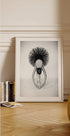 Ein beeindruckendes Schwarz-Weiß-Foto einer Ballerina in einer anmutigen Dehnposition. Von oben eingefangen, balanciert die Tänzerin auf Zehenspitzen mit elegant zum Boden ausgestreckten Armen, während das Tutu einen perfekten kreisförmigen Rahmen bildet. Das Kunstwerk zelebriert die Disziplin, Eleganz und Ausgewogenheit des klassischen Balletts.