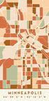 Black Maps Earth Tones 55 von Emiliano Deificus destilliert Minneapolis in ein grüblerisches kartografisches Kunstwerk: ein dichtes Geflecht aus Straßen, Blöcken und Flusskonturen in tiefem Schwarz und warmen Ockertönen. Breiten- und Längengrad flüstern durch das Raster und verschmelzen Stadttextur mit abstrakter Geometrie für eine raffinierte urbane Stimmung.