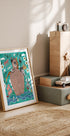 Eine verspielte und farbenfrohe Illustration der Arche Noah, gefüllt mit Tieren wie Giraffen, Elefanten, Zebras, Affen und Vögeln. Umgeben von üppigen Blumen und lebendigem Wasser fängt dieses bezaubernde Kunstwerk die Freude und Fantasie der beliebten Bibelgeschichte ein. Perfekt für Kinderzimmer, Kindergärten oder für alle, die Tierillustrationen lieben.