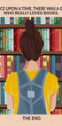 Ein bezauberndes Illustrationsposter eines Mädchens, das vor einem farbenfrohen Bücherregal steht und seine Liebe zu Büchern feiert. Die verspielte Typografie liest sich „Es war einmal ein Mädchen, das Bücher wirklich liebte. Das Ende.“ Perfektes Geschenk für Buchliebhaber und ein inspirierendes Detail für Bibliotheken, Leseecken und gemütliche Zuhause.
