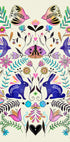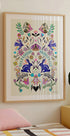 Ein lebhaftes, von der Volkskunst inspiriertes Poster mit gespiegelten Hasen, Vögeln, Schmetterlingen und blühenden Blumen in einem verspielten und dekorativen Stil. Mit ihrem nordisch-ländlichen Charme und den kräftigen Farben bringt die Illustration sowohl Wärme als auch Fantasie in jedes Interieur.