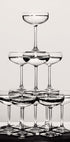 Ein beeindruckendes Schwarz-Weiß-Stillleben eines Champagnerturms. Dieses elegante, minimalistische und nachdenkliche Kunstwerk symbolisiert Feierlichkeit und Stil und eignet sich perfekt für Küchen, Bars oder moderne Innenräume.