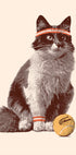 Ein verspieltes Poster im Vintage-Stil mit einer flauschigen Katze im Tennisspielerkostüm, komplett mit Schweißband und einem Wilson-Tennisball. Das humorvolle und stilvolle Design verbindet Sport mit katzenartigem Charme und macht es zu einem lustigen und auffälligen Stück für Tierliebhaber und Sportfans.
