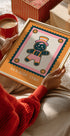 Eine warme, gemütliche Szene mit einem lächelnden Lebkuchenmann, umgeben von frisch gebackenen Keksen, Zimtsternen und einer Prise Puderzucker auf einem winterlichen Tisch. Sanfte Goldtöne und gedämpftes Licht umrahmen das Motiv, während Weihnachtszweige im Hintergrund für Vorfreude, Winterglanz und pures Keksglück sorgen. Perfekt für winterliche Gemütlichkeit in der Küche.
