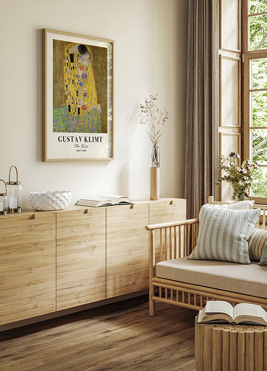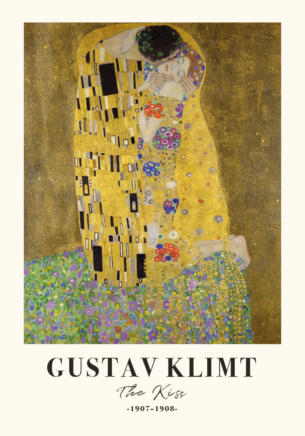 Gustav Klimts Meisterwerk „Der Kuss“ ist ein atemberaubendes Symbol der Liebe und Intimität, geschaffen während seiner Goldenen Periode. Dieses ikonische Kunstwerk zeigt ein Paar in liebevoller Umarmung, umgeben von goldenen Mustern und lebendigen Blumendekorationen. Mit seinen reichen Details und dem Blattgold ist dies eines der berühmtesten symbolistischen Kunstwerke, das Romantik und Leidenschaft ausstrahlt.