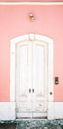 Ein eindrucksvolles Foto von Raisa Zwart aus Lissabon: eine strahlend weiße Tür in einer puderrosa Fassade, umrahmt von klassischen Details und sonnenwarmen Schatten. Die sanften Pastelltöne und roten Akzente unterstreichen den poetischen Rhythmus der Stadt, in der gepflasterte Straßen, Patina und Sommerlicht einen ruhigen, urbanen Charme schaffen. Perfekt, um Wärme und Farbe ins Zuhause zu bringen.