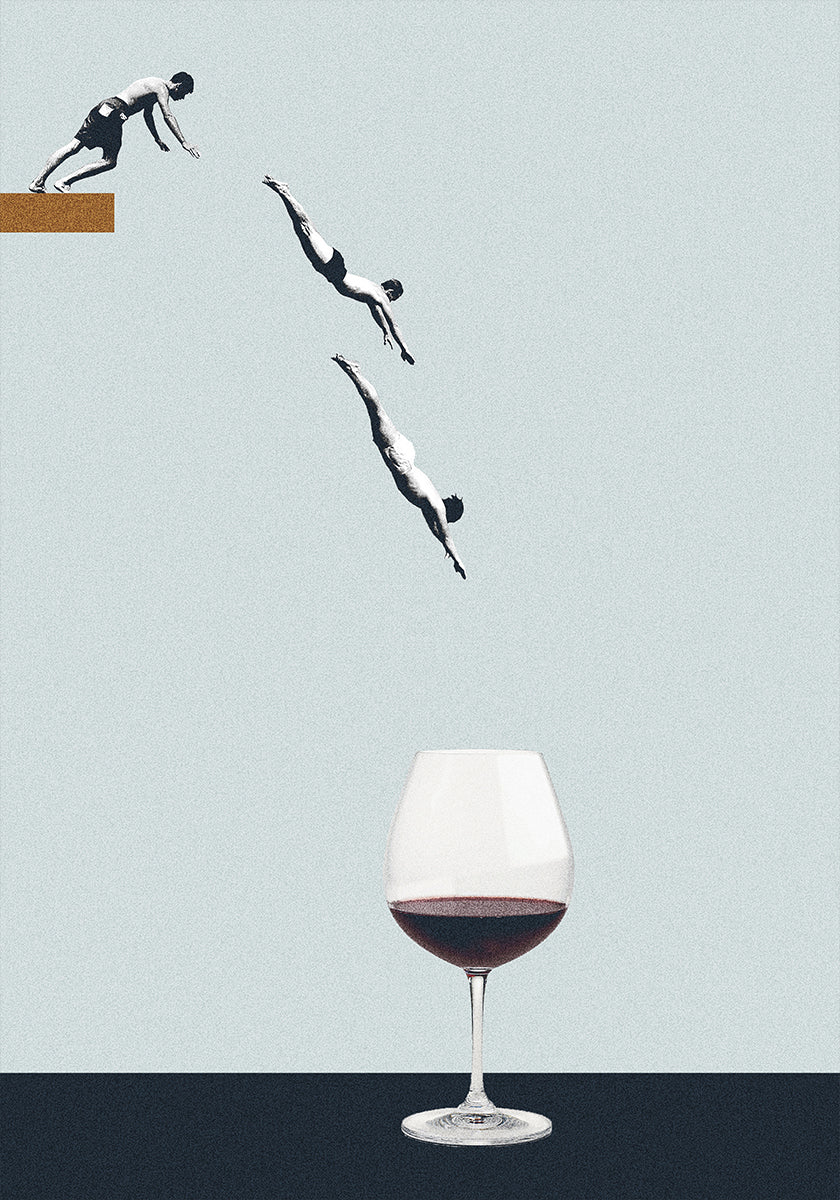 Ein witziger und minimalistischer Kunstdruck, der einen perfekten Tauchgang zeigt – direkt in ein Glas Rotwein. Mit seinem verspielten Konzept und der klaren Komposition passt dieses Stück perfekt in Küchen, Esszimmer oder jeden Raum, der Humor mit einem Hauch von Raffinesse vereint. Ein lustiger Gesprächsstarter für Weinliebhaber und Designbegeisterte.