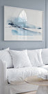 Eine ruhige Winterlandschaft in sanften, blauen Pastelltönen breitet sich wie ein ruhiger Hauch über dem Horizont aus. Feine Aquarellstriche suggerieren Schnee, Himmel und entfernte Bäume in einer einfachen, ausgewogenen Komposition. Das Motiv strahlt nordische Ruhe und Besonnenheit aus – eine ruhige Jahreszeit für die Wände des Hauses. Von Treechild. Perfekt für Wohnzimmer, Schlafzimmer oder Büro.