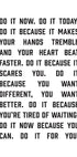 Ein auffälliges schwarz-weißes Typografie-Poster mit der motivierenden Botschaft „Tu es jetzt. Tu es heute. Tu es, denn es lässt deine Hände zittern und dein Herz schneller schlagen …“ Dieses kraftvolle Werk inspiriert zu Mut, Entschlossenheit und Tatkraft und eignet sich perfekt für Arbeitsräume, Studios oder jeden Ort, an dem Motivation benötigt wird.