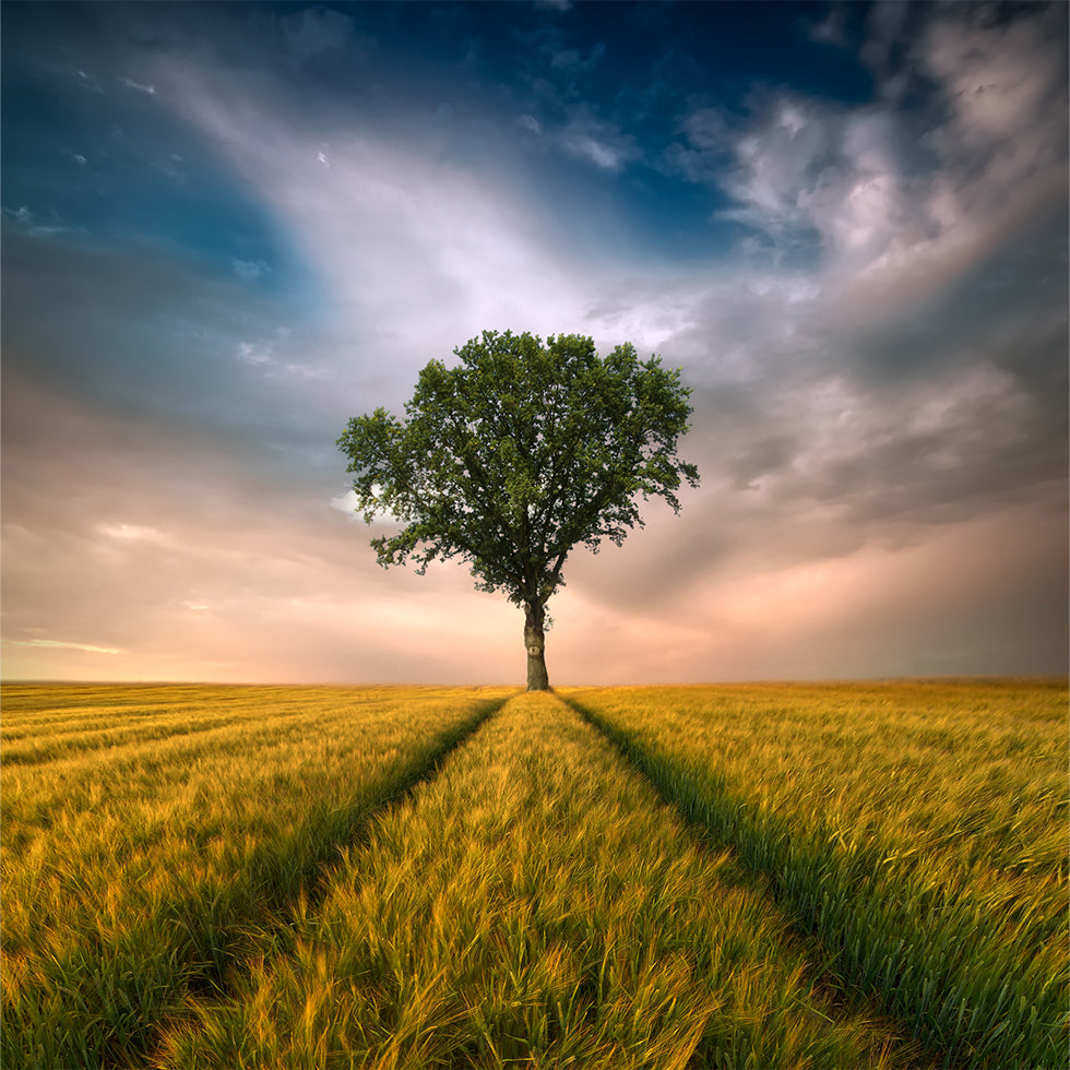 Eines vom Fotografen Piotr Krol (Bax) fängt einen einsamen Baum inmitten eines sanften, goldenen Weizenfeldes ein. Weiche Spurrillen durchschneiden die Landschaft und lenken den Blick Richtung Horizont, wo warmes Sommerlicht auf einen weiten, offenen Himmel trifft. Ein ruhiger, poetischer Moment aus der polnischen Landschaft, voller Ruhe, Tiefe und Perspektive. Und Hoffnung.