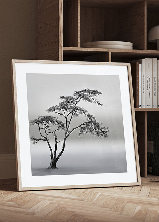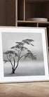 Ein einsamer Baum steht als Silhouette im dichten Nebel über der Savanne in Naivasha, Kenia. Die monochrome Stimmung fängt die Stille, die Tiefe und die offene Landschaft ein, in der Zeit und Distanz verschmelzen. Das Foto „a very long story“ wurde von Piet Flour geschaffen und strahlt Ruhe, Poesie und Nachdenklichkeit aus. Ein Bild von Sehnsucht, Weite und unendlichem Horizont.