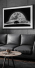 Dieses surreale Schwarz-Weiß-Kunstwerk zeigt einen einsamen Baum unter einem leuchtenden Vollmond, während Vögel über einem verträumten Nachthimmel schweben. Wolken ziehen durch die leuchtende Szene und vereinen Fantasie und Natur in einer eindrucksvollen Komposition, die Geheimnis, Wunder und zeitlose Eleganz einfängt.