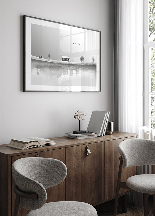 „Endless Beginning“ von Hadi Malijani zeigt einen verträumten Spaziergang in Richtung Horizont. Eine einsame Silhouette bewegt sich durch Nebel und Wolkenschichten, während ferne Berge im Licht zu erkennen sind. Die Kontraste zwischen Dunkelheit und Glanz erzeugen Ruhe und Spannung zugleich – ein poetisches Gefühl von Abschied und Neuanfang. Perfekt für ruhige Räume und große Träume.