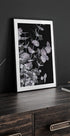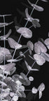Ein skulpturaler Eukalyptuszweig taucht im Negativ auf, getaucht in tiefe Lilatöne vor einem tiefschwarzen Hintergrund. Die feinen Blätter bilden ein grafisches, minimalistisches Muster mit Ruhe und dramatischem Kontrast, das ins Auge fällt. Ein modernes Stillleben, ideal als eleganter Mittelpunkt im Wohnzimmer, im Eingangsbereich oder im Schlafzimmer. Hängen Sie es alleine auf.