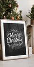 Ein stimmungsvolles typografisches Motiv im Kreidetafel-Look von Treechild: Handgezeichnete Schriftzüge und dekorative Ornamente vereinen Weihnachtsgrüße wie „Frohe Weihnachten“ und „Fröhliche Feiertage“. Monochromes Schwarz und Weiß mit Schneeflocken, Sternen und Zweigen sorgt für eine warme, nostalgische Café-Atmosphäre – perfekt für den gemütlichen Dezember zu Hause.