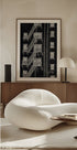 Das „Fire Escape Negative Image“ von Janel Bragg fängt den Puls der Stadt in einer dramatischen, monochromen Komposition ein. Die scharfen Linien und Schatten einer Außentreppe zeichnen grafische Muster gegen die Fenster und den Stahl der Fassade. Ein modernes, urbanes Motiv mit industrieller Poesie, perfekt, um dem Raum Akzente und Rhythmus zu verleihen. Inspiriert von der Geometrie der Großstadt und zeitlosem Minimalismus.