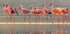 Ein atemberaubendes Naturfoto eines Flamingoschwarms, der sich anmutig im flachen Wasser bewegt, mit eleganten rosa Federn, die sich wunderschön in der Oberfläche des Sees spiegeln. Diese ruhige Naturszene fängt Harmonie, Bewegung und wilde Romantik ein – perfekte Wandkunst für Vogel- und Naturliebhaber.
