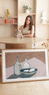 Tauchen Sie ein in ein ruhiges, modernes Stillleben: Bottles von Dan Hobday kombiniert sanfte Beige- und Rosatöne mit selbstbewussten Pinselstrichen, die eine Sammlung von Flaschen in grafischen, minimalistischen Formen suggerieren. Die malerische Textur und die luftige Komposition verleihen dem Raum eine stilvolle, warme und moderne Ruhe. Perfekt für skandinavisches Dekor.