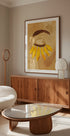 Ein eindrucksvolles figuratives Kunstwerk eines Auges mit langen gelben Blütenblättern als Wimpern, ein Symbol für Schönheit, Kreativität und die Verbindung zwischen Natur und Weiblichkeit. Dieses kühne digitale Kunstwerk kombiniert Porträtmalerei mit floralem Surrealismus.