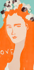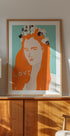 Frau mit orangefarbenem Haar, geschmückt mit Blumen Poster