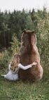 Betreten Sie einen Märchenwald, in dem sich eine junge Frau mit vertrauensvoll und ruhig geschlossenen Augen in das dichte Fell eines sanften Braunbären schmiegt. Dieses verträumte Porträt der Künstlerin Olga Barantseva zelebriert Zärtlichkeit, Schutz und die stille Magie der Freundschaft zwischen Mensch und Wildnis. Ein zartes Duett voller Mut und Fürsorge, perfekt für Träumer und Romantiker.