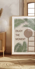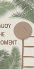 Eine erfrischende Hommage an das entspannte Leben – dieses Sommerposter ist mit dem inspirierenden Zitat „Enjoy the moment“ geschmückt, umgeben von hellen Palmwedeln, einer rustikalen Holzleiter und einem klassischen Sonnenhut. Die natürlichen Elemente und Erdtöne schaffen eine helle und luftige Atmosphäre – perfekt, um jedem Raum Urlaubsfeeling und Präsenz zu verleihen. Ideal für Galeriewände oder gemütliche Ecken, die einen Hauch tropischer Ruhe verdienen.