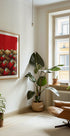 Goldene und rote Berggipfel erheben sich in Schichten geometrischer Formen wie eine gesteppte Winterlandschaft, die in ruhiges Dezemberlicht getaucht ist. Schneebedeckte Hänge und tiefe Karminnuancen treffen auf feine Goldakzente und sorgen für Rhythmus und Ruhe. Eine moderne, festliche Landschaft von Stephen Wade, ideal für den nordischen Minimalismus. Perfekt als warmer Farbakzent im Wohnzimmer oder Eingangsbereich.