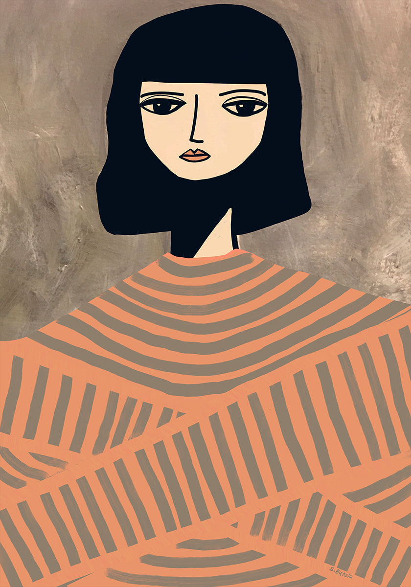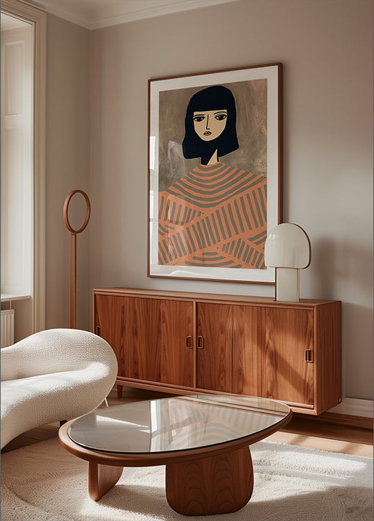 „Big Hug“ von Sharyn Bursic fängt eine skurrile Winterstimmung ein: Ein Mädchen in einem gestreiften Pullover umarmt sich warm, während sich Frost und Schnee um sie legen. Ein poetisches, figuratives Porträt mit sanften, malerischen Strichen und grafischer Einfachheit, das Kälte und Nähe in Einklang bringt. Perfekt, um winterliche Poesie und Wärme ins Zuhause zu bringen.