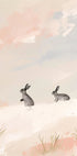 Hasen Im Schnee von Ohkimiko fängt die stille Poesie des Winters ein: Hasen bewegen sich behutsam durch Pulverschnee über sanfte Hügel, umgeben von gedämpften Pastelltönen und frostiger Luft. Die feinen, ruhigen Linien und dezenten Fußabdrücke sorgen in jedem Raum für ein Gefühl von Ruhe, Wärme und nordischer Schlichtheit. Ein poetisches Wintermotiv, das zum Nachdenken einlädt.