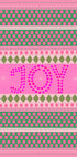 Bright Joy von Aliya Putrus versprüht festliche Stimmung: Das Wort JOY setzt sich aus geometrischen Formen und stichartigen Mustern zusammen, die an Stickereien und Patchwork erinnern. Frische Rosa- und Grüntöne, glitzernde Pailletten und Steppdecken-inspirierte Felder schaffen eine lebendige, winterliche Hommage an Freude und farbenfrohen Optimismus.