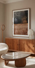 Ein modernes abstraktes Kunstwerk mit erdigen Tönen in Braun, Orange und Grau, kombiniert mit einer rustikalen strukturierten Oberfläche. Goldene vertikale Striche sorgen für Tiefe und Kontrast und sorgen für einen zeitlosen Ausdruck. Perfekt für minimalistische, rustikale oder moderne Innenräume, die Wärme und Eleganz wünschen.