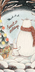 Mit Heart of the Forest lässt uns Olena Kovalova eine stille Waldlichtung betreten, wo sich ein Bär und ein Kaninchen zwischen Schneeflocken und Fichten treffen. Vintage-inspirierte Weihnachtstöne in Rot, Grün und Blaugrün verleihen der frostigen Szene Wärme und erwecken Kindheitsabenteuer und Winterspaß zum Leben. Eine süße Hommage an die Ruhe von Weihnachten im Herzen der Natur.