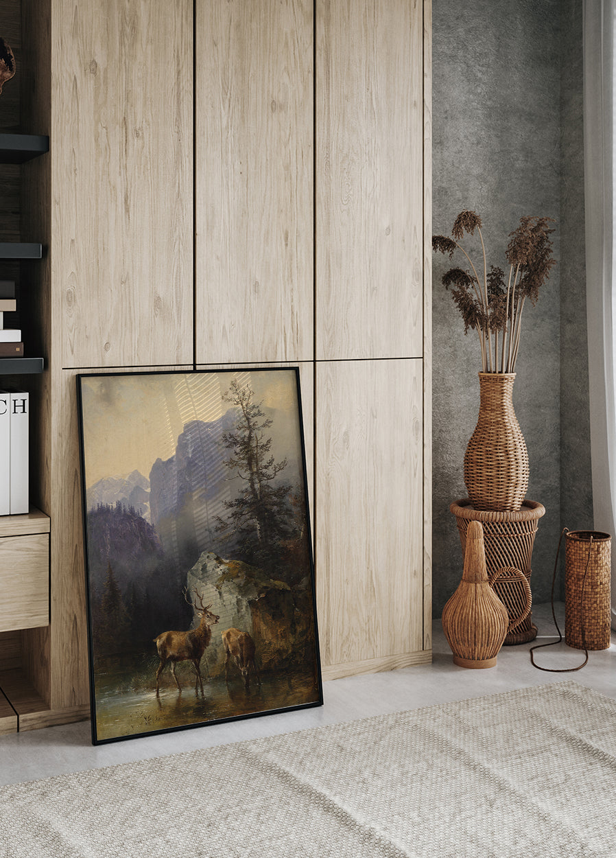 Hirsche und Tiere an der Wasserstelle von Friedrich Gauermann Poster