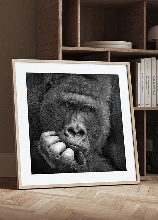Ein starkes, monochromes Porträt des Silberrückens Buzandi aus dem Zoo Hannover: eine Nahaufnahme des Gesichts, dessen tiefe, nachdenkliche Augen sowohl Ruhe als auch Sehnsucht vermitteln. Antje Wenner-Braun fängt einen intimen Moment stiller Besinnung ein, in dem Zeit und Raum in Gedanken und Träumen zu verschwinden scheinen. Ein Porträt, das zu Ruhe, Empathie und Nachdenken einlädt.