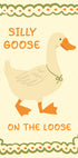 Eine fröhliche und humorvolle Illustration einer Gans mit der verspielten Phrase „Silly Goose on the Loose“, eingerahmt in einer volkstümlichen Bordüre. Dieser verspielte Druck verleiht einen Hauch von Spaß und gemütlichem Charme und ist die perfekte Wahl für Küchen, Kinderzimmer oder Innenräume, die Humor und Gemütlichkeit fördern.