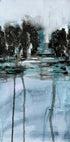 Eine poetische Aquarelllandschaft von Helena Ryhle: Schlanke Bäume säumen das Ufer, ihre Silhouetten spiegeln sich im stillen Wasser. Kühle Blaugrautöne, leichter Nebel und sanfte Pinselstriche schaffen eine ruhige, winterliche Atmosphäre mit einem Hauch Melancholie – perfekt für moderne, nordische Einrichtung. Schafft Ruhe und Tiefe.