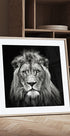 Ein dramatisches Schwarz-Weiß-Porträt eines jungen männlichen Löwen, aufgenommen in dezenter Beleuchtung mit intensivem Blick und majestätisch beginnender Mähne. Christian Meermann fängt die Stärke und Verletzlichkeit des Tieres in einer zeitlosen Nahaufnahme ein, wobei die Textur von Fell und Schatten Ruhe, Tiefe und moderne, minimalistische Eleganz schafft. Perfekt als Blickfang im Wohnzimmer, Büro oder in der Galerie.