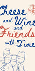 Ein bezauberndes typografisches Poster mit dem Text „Cheese and Wine and Friends with Time“, illustriert mit einem zum Toast erhobenen Weinglas und einem Käseteller im Skizzenstil. Dieses verspielte Design ist perfekt für Küchen, Esszimmer und Weinliebhaber und feiert Freundschaft, Essen und gute Momente.
