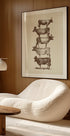 Ein humorvolles und surreales Kunstwerk im Vintage-Stil, das einen Stapel Kühe zeigt, von denen jede unterschiedliche Hüte trägt. Eine verspielte Illustration, die ländliche Nostalgie mit ironischem Humor verbindet – perfekt für die Dekoration eines Bauernhauses oder vielseitige Kunstsammlungen.