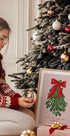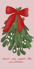 Eine poetische Hommage an die Romantik der Weihnachtszeit: Ein eleganter Mistelstrauß, gebunden mit einer roten Schleife, schwebt zentral auf einem hellen, ruhigen Hintergrund, bereit für einen gestohlenen Kuss. Klassisch, zeitlos und leicht nostalgisch – ein Motiv, das im Eingangsbereich, Wohnzimmer oder Schlafzimmer Wärme und Vorfreude verbreitet. Design von Athene Fritsch. Perfekt als Weihnachtsgruß.