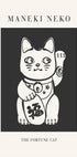 Maneki Neko Lucky Cat Poster – Dunkle Ausgabe hat einen tiefschwarzen Hintergrund, der den Charme der ikonischen japanischen Glückskatzenillustration hervorhebt. Dieses moderne, monochrome Design verbindet kulturelle Symbolik mit auffälligem visuellem Kontrast und ist somit eine elegante Wahl für minimalistische und eklektische Innenräume. Dieses Stück wird mit Wohlstand, Glück und Schutz in Verbindung gebracht und eignet sich perfekt für Zuhause, Büros oder als bedeutungsvolles Geschenk für diejenigen, die die japanische Tradition lieben.