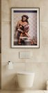 Ein verspielter und glamouröser Kunstdruck, der eine stilvolle Frau in Dessous und Haarlocken zeigt, die in einer unerwarteten Umgebung lässig ein Modemagazin liest. Die scharfen Details, die satten Farben und die freche Komposition machen dieses Stück zu einem lustigen und modernen Statement für Innenräume, die Humor und Persönlichkeit ausstrahlen. Perfekt für Modeliebhaber und alle, die mutiges Innendesign lieben.