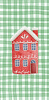 Niedliches rotes Weihnachtshaus auf grünem Karo-Poster