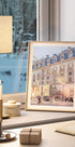 Parislights Ratioiso von Talitha McQueen fängt einen winterkalten Pariser Abend ein, an dem der Schnee wie eine stille Decke über den Straßen liegt. Warmes Licht aus Fenstern und Ladenschildern spiegelt sich im nassen Asphalt, während sich Autos und Fußgänger zwischen eleganten Fassaden und engen Gassen bewegen. Ein stimmungsvoller Blick auf die Großstadt bei Schneewetter.